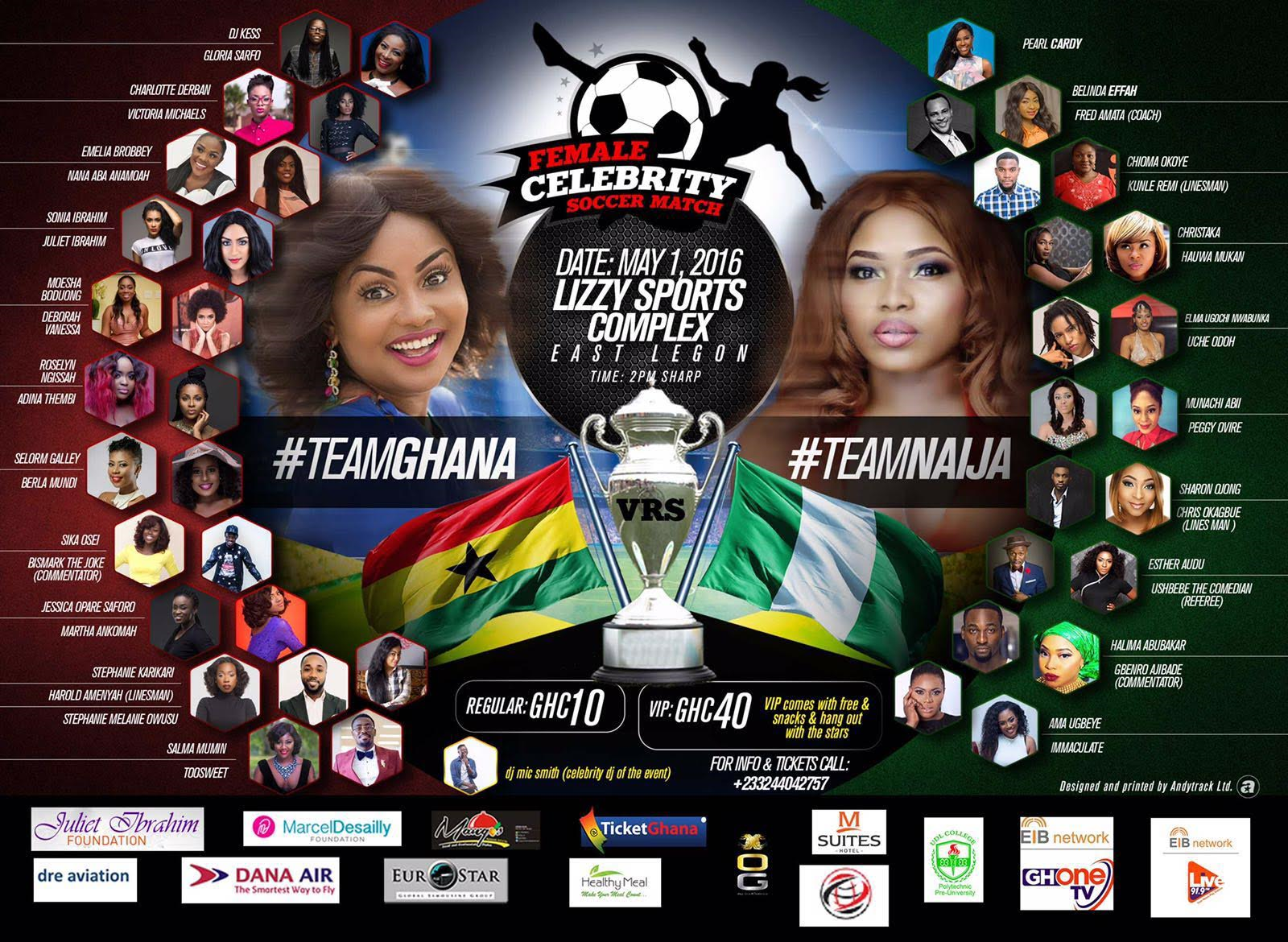 Nigerian & Ghanaian Female Celebrities Set to Slug it out at the Annual Juliet Ibrahim Foundation Celebrity Soccer Match in Ghana.