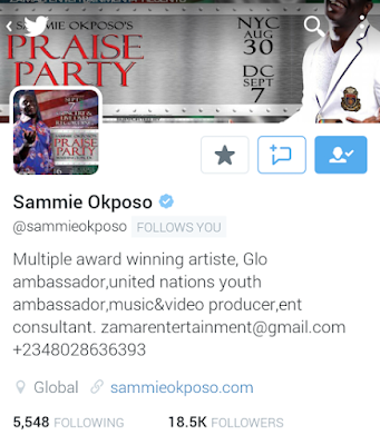 Y’all know it’s not easy for a celebrity or any entrepreneur to get the ‘blue check mark’ on twitter, but Nigerian gospel artist, Sammy Okposo’s account was verified yesterday without much ado.