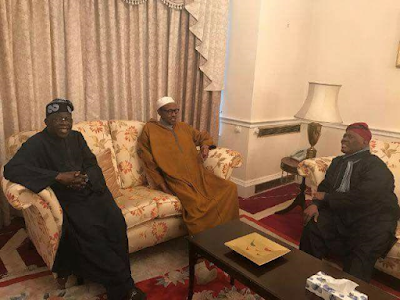 This afternoon, the presidency shared new photos of President Buhari in the UK. He received APC National leader, Bola Tinubu and former Osun state governor, Bisi Akande at the Nigerian House where he is residing (read here). Some Nigerians claim the photos are photoshopped as they show President Buhari wearing the same Kaftan and Cap he wore in previously released photos. See their comments below..