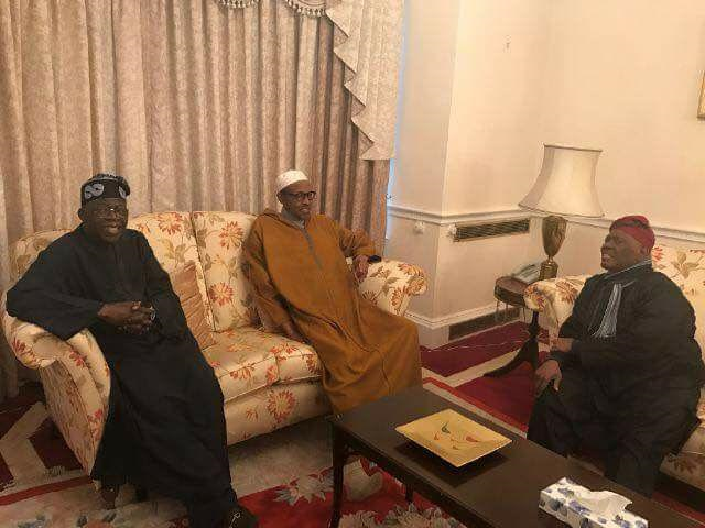 This afternoon, the presidency shared new photos of President Buhari in the UK. He received APC National leader, Bola Tinubu and former Osun state governor, Bisi Akande at the Nigerian House where he is residing (read here). Some Nigerians claim the photos are photoshopped as they show President Buhari wearing the same Kaftan and Cap he wore in previously released photos. See their comments below..
