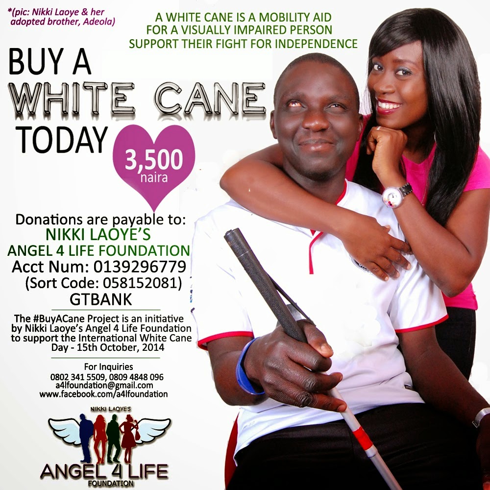Nikki Laoye, who has an adopted blind brother herself, seeks the donation and support of the public in buying ONE white guide cane or more, at 3,500 naira each.