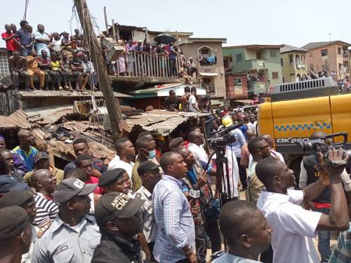Around about 11am on Wednesday, a four-storeyed building containing residential buildings, a nursery and primary school as well as a shop complex on the ground floor, collapsed at Ita Faji on the Lagos Island, killing and trapping many people inside.