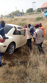 A driver of a private car lost control and went off road into a ditch due to reckless driving along Kaduna / Zaria highway on the December 31, 2017. The driver who was said to have been on top speed – came out from the accident unscathed and was warned and cautioned by emergency and road safety officials.