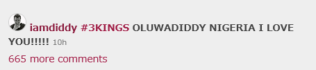 The American music icon confessed his love for Nigeria on social network. He even went as far as giving himself a Nigerian name, Oluwadiddy. Wow! That is deep.