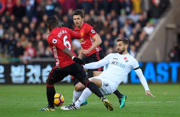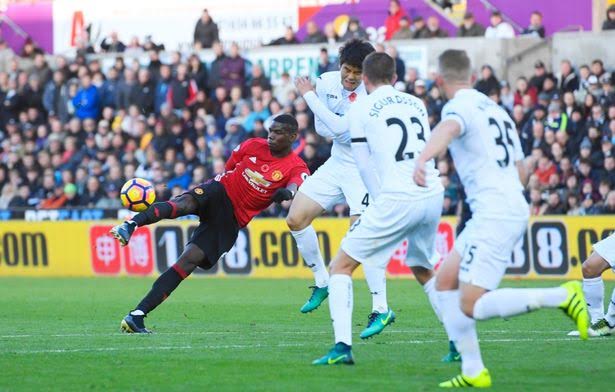 The Old Trafford club kept their premier league ambitions alive with a 3-1 win over Swansea courtesy of goals from Paul Pogba and Zlatan Ibrahimovic. Paul Pogba opened the score line with an incredible flash strike from 23 yards out before Zlatan Ibrahimovic doubled the lead after squeezing a long range ground shot at the near post.