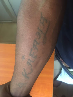 Phone Thief In Oshodi & Ex-Convict, Tattoos Names Of Ladies He Has Slept With On His Body (PHOTOS)