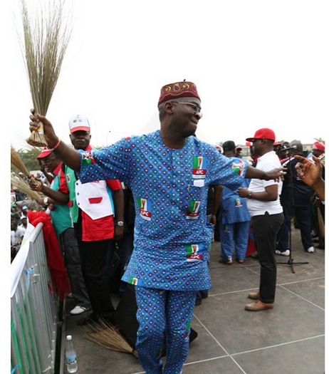 Lagos State Governor, Babatune Raji Fashola (SAN) was pictured dancing shoki earlier today at the APC campaign rally in Oworonshoki, Lagos. Chia! this man soji no be small… Oya shoki (see another photo below)