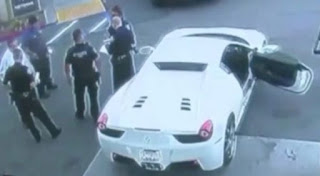 Police in Santa Ana arrested the 38-year-old after spotting him begging for money to put petrol in the 458 Spider.