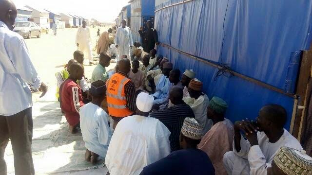 NEMA/SEMA camp managers are pictured condoling with bereaved families affected by suicide bomb blast which occurred at a coffee drinking spot near the gate of Bakassi IDP camp in Maiduguri Borno State.