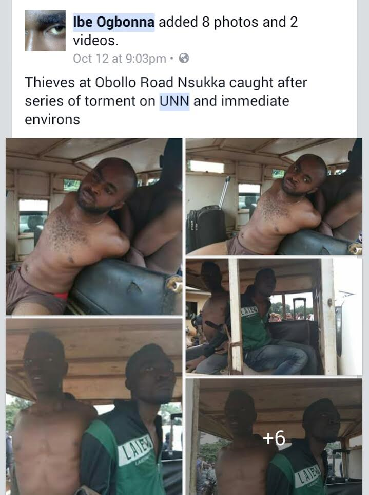 According to a man named Ibe Ogbonna, suspected thieves who stay at Obollo road and terrorize/torment people in the University of Nigeria, Nsukka, and its environs in Enugu State, have finally been apprehended by the police. More photos after the cut…