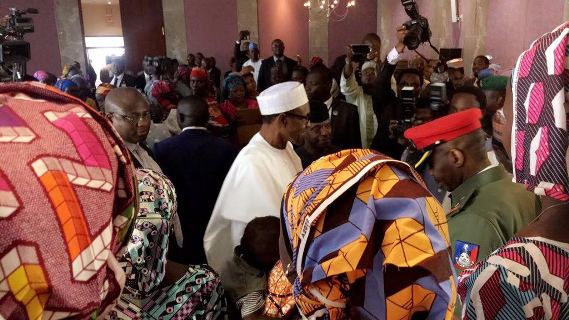 President Buhari met with the 21 freed Chibok girls and their families at the State House, Abuja, today October 19th. More photos after the cut…