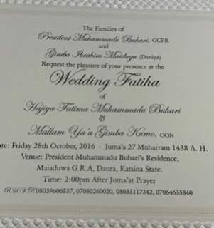 One of President Buhari’s daughter, Fatima, will be getting married to her fiancé, Gimba Kumo, this Friday October 28th in Katsina state. Congrats to them.