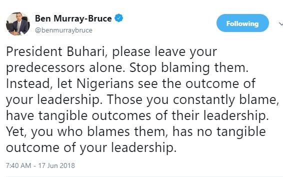 Bayelsa State Senator, Ben Bruce has once again advised President Buhari to leave his predecessors alone and stop blaming them.