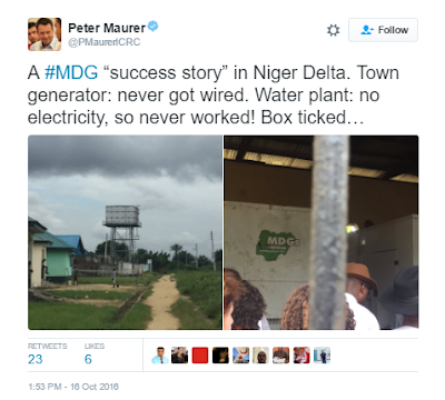 Peter Maurer, the President of the International Committee of the Red Cross, paid a trip on Sunday to villages in Niger Delta and shared his disheartening observations via social media. More photos after the cut…