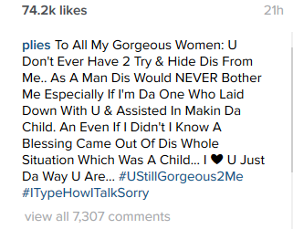 The American rapper got a message for women who are not proud of their post baby bod. See his post caption below…