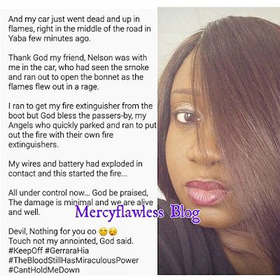 The singer was full of thanks as she shared the experience on her instagam page some hours ago.