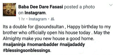 Sound Sultan who turned 40 years old today officially opened his new home. His brother Baba Dee, took to his IG account to wish his brother well and celebrate his new home. Baba Dee wrote: