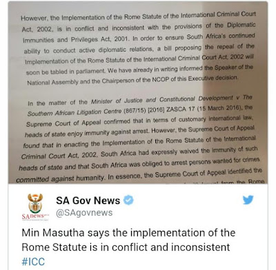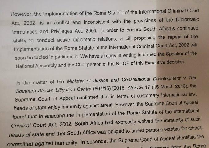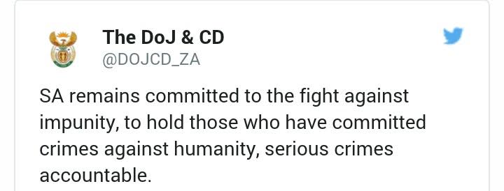 South Africa’s justice minister added that the country remains committed to holding those who committed crimes against humanity accountable, and that it intended to work closely with the African Union and other African countries.