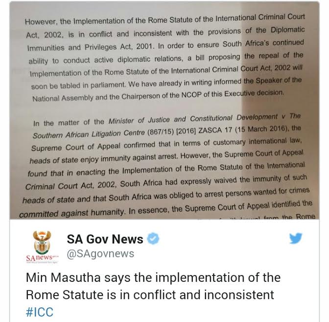 In a move that comes as a surprise to many, South Africa has announced it is pulling out of the International Criminal Court and has initiated the withdrawal process. This comes on the heels of Burundi’s announcement that it was leaving the court.