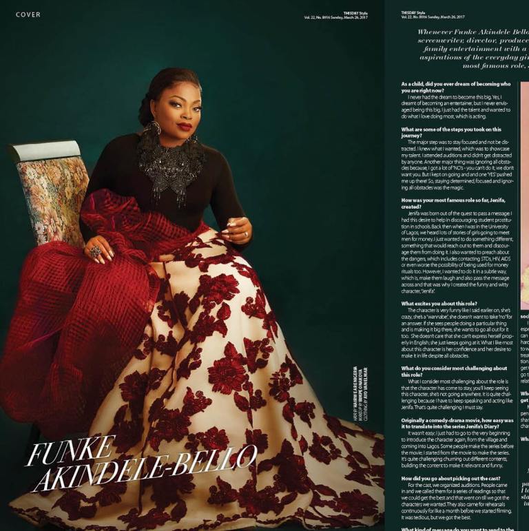 Multiple award winning Nigerian actress and movie producer, Funke Akindele-Bello covers the Sunday edition of This Day Style Magazine.