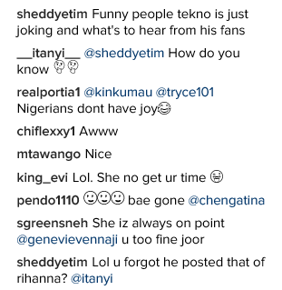 Singer, Tekno took to his IG page to declare his undying love for actress Genevieve but her fans weren’t here for Tekno, lol. Read some of comments after the cut…