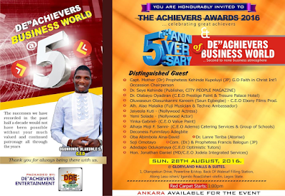 The event as packaged by De”Achievers Entertainment in collaboration with CityTimes Magazine will be anchored by the duo of “Bunmi Mustapha of City People Magazine” and the fast rising comedian “Kenny Blaq“.