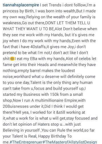 The hardworking mom of two and stylist also wrote about her royal background. See caption and more photos below…