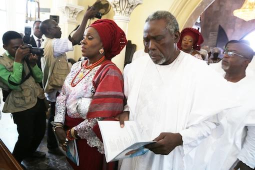 Nigerian veteran thespian, Joke Silva held a funeral service for her late mother, Dr Marianne Abimbola Silva on Thursday July 30, at the Cathederal Church of Christ in Lagos. Veteran actor, Olu Jacob was also present at his mother-in-law’s burial and he stood by his wife all through the event.