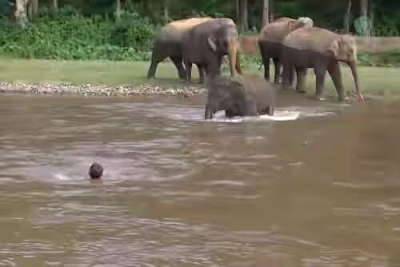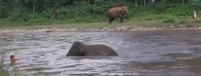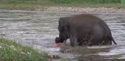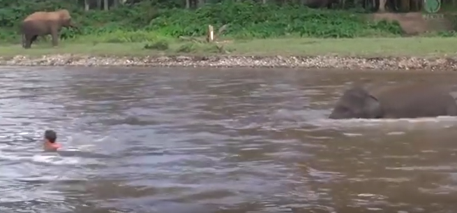 Watch this baby Elephant rush to the aid of human friend who apppeared to be drowning