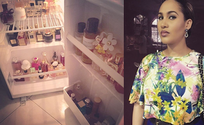 Just in case you are looking for a way to store your perfume and body cream, here it is. Nigerian actress and billionaire wife, Caroline Danjuma adviced that, you should keep them in your refrigerator for better preservation. See the caption she wrote with the pic on Instagram below…