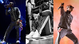 The tracksuit, which retails for the equivalent on N992,000 was covered in shiny dots which reflected beautifully off the lights on the stage and made Wizkid look every inch the star he has become.