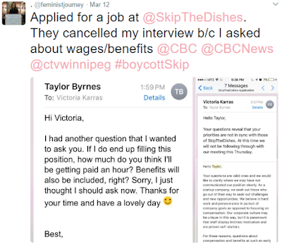 The woman, whose name was given as Victoria Karras, was called for a second interview and the same thing happened. During her interview with the company called SkipThe Dishes, she asked them what her salary would be and here is how they responded:
