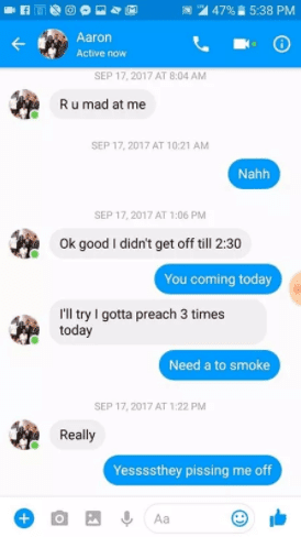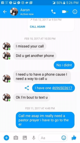The woman first posted screenshots of the messages on the Church’s Facebook page. She claimed they were sent to her by pastor Aaron L Finley, but the pastor, who is married with kids, claims not to know the woman in question.