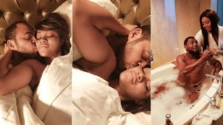Nollywood actors, Ramsey Nouah and Damilola Adegbite are pictured all loved up on set a new movie, Yoruba Demons.